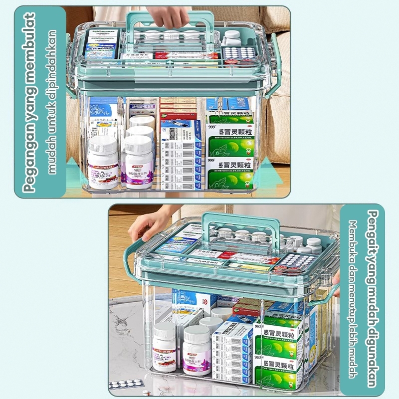 Kotak Medicine/Kotak Obat Penyimpanan Serbaguna/Kotak Penyimpanan Transparan Portable/ Kotak Medicine Multifungsi