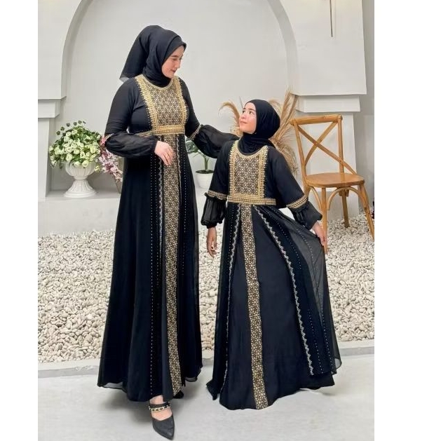 GAMIS ABAYA TURKEY BORDIR SAFIRA COKLAT COUPLE IBU DAN ANAK