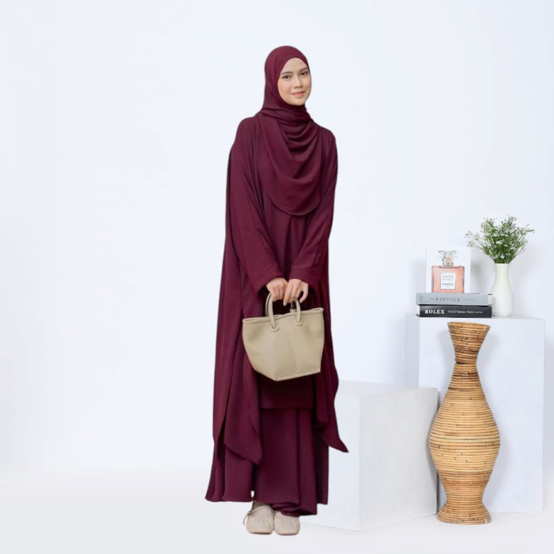 One Set Rok Tunik Melayu Syari Pashmina Oval Setelan Abaya Wanita Set Hijab Crinkle Airflow Premium