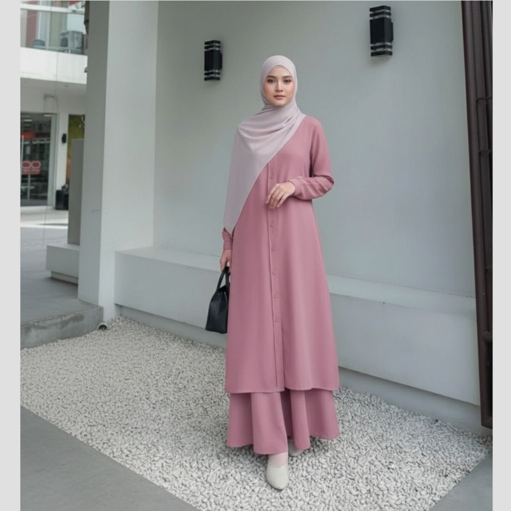 Baju Setelan One Set Rok Tunik Wanita Muslim Jumbo Kekinian Itty Creepe Premium - M L XL XXL- Busui Friendly