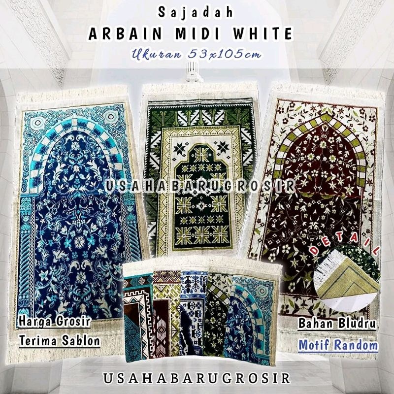 GROSIRAN Sajadah Turki Arbain Cream Premium Isi 10 Pcs Ukuran Midi 55 x 105 CM