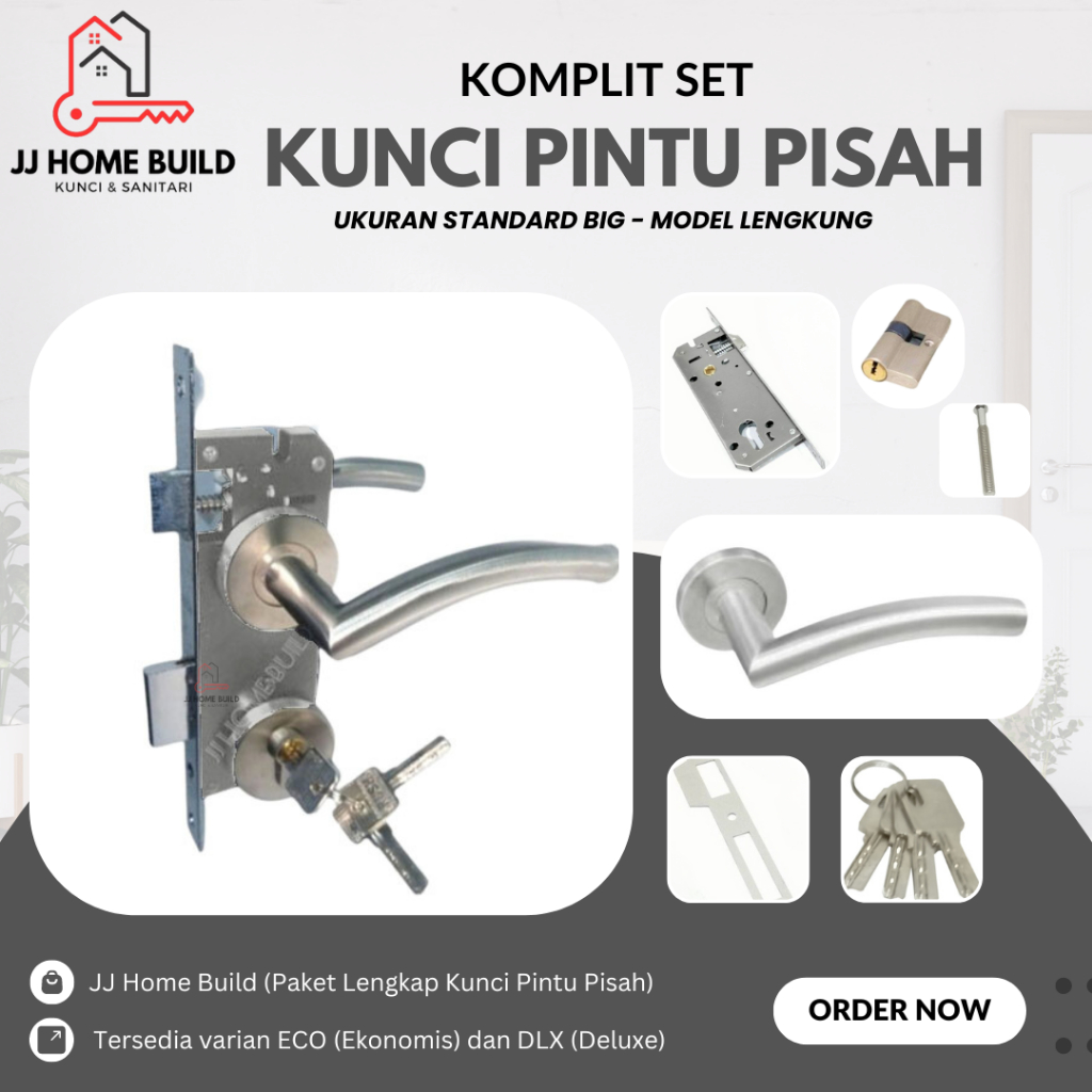 Paket Kunci Pintu Pisah Stainless Steel/Gagang Pintu Kunci Pisah Stainless Steel/Handle Komplit Set