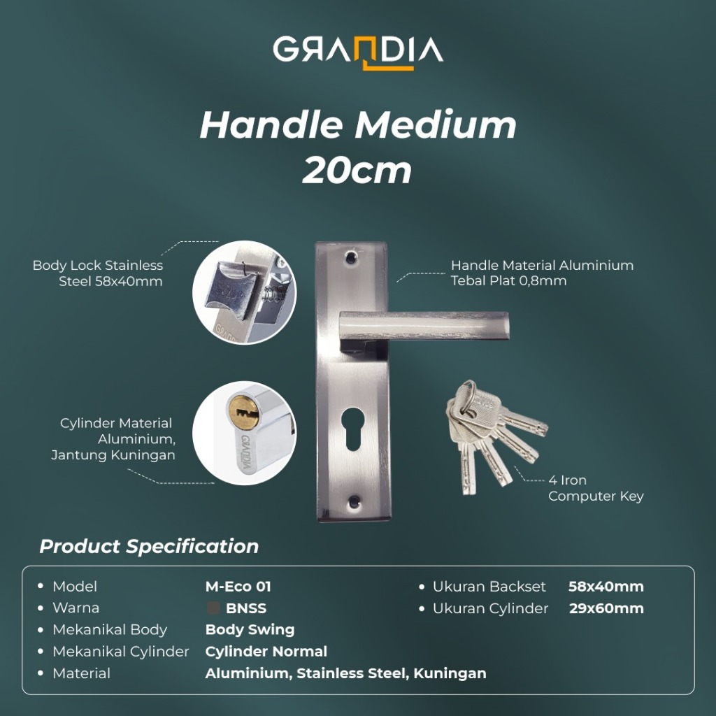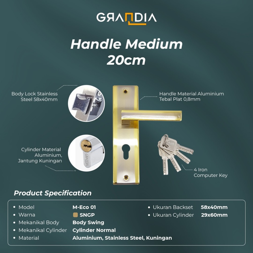 Handle Set Kunci Pintu Gagang Pintu Aluminium Besi Medium 20 cm