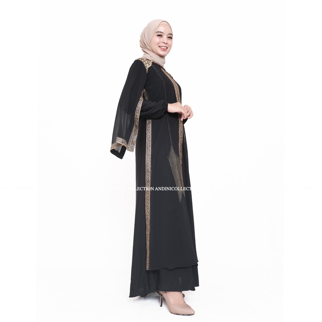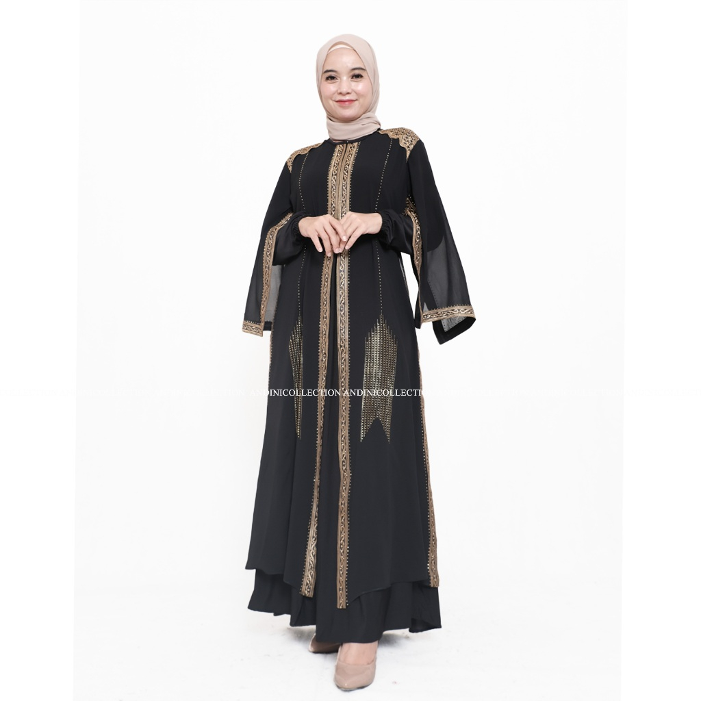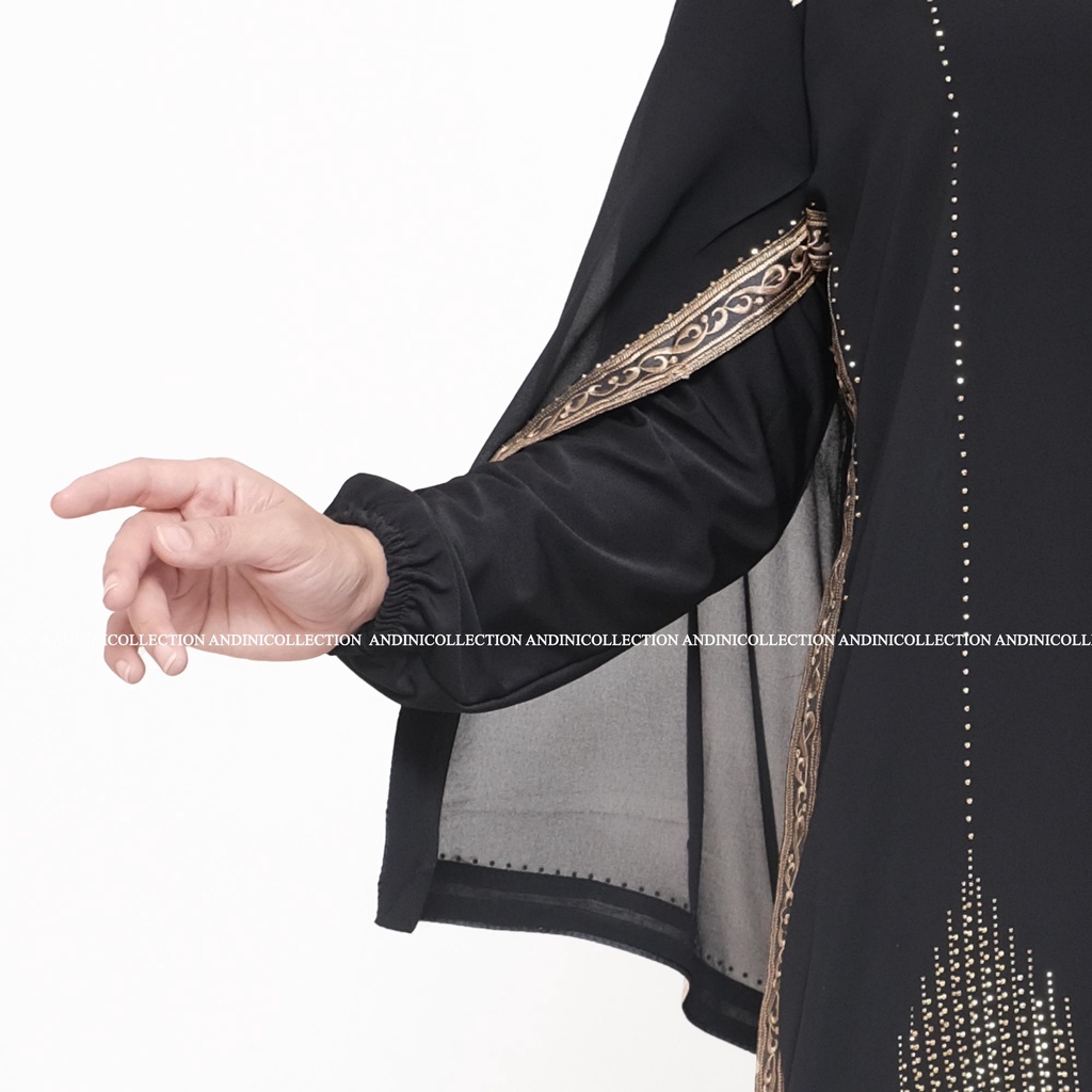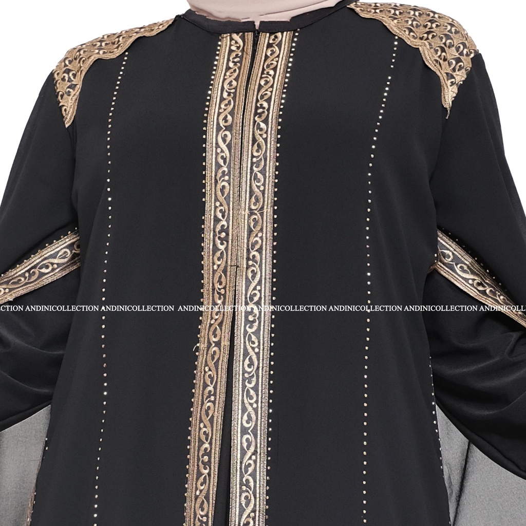 Abaya Turkey 150 Amarta Hitam Putih Dewasa Muslim Bordir dan Payet Mewah