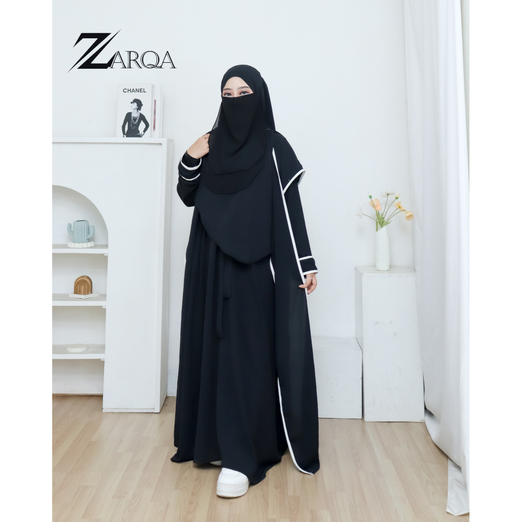 Maura Abaya Set 2in1 Basic Turkey Wanita Bahan Airflow Dress + Outer Terpisah