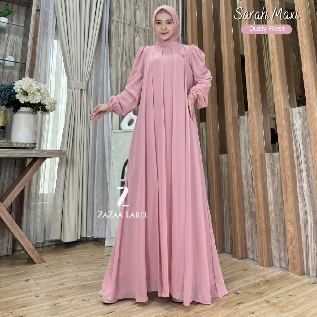 Zazaa Label - New Sarah Maxi Gamis Jumbo Hijab Motif Polos Bahan Ceruty Non Busui Lengan Balon Pesta Mewah
