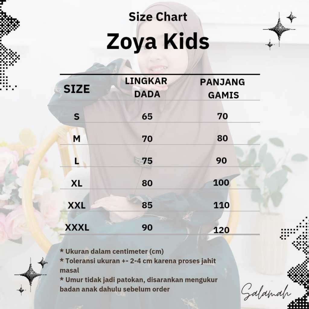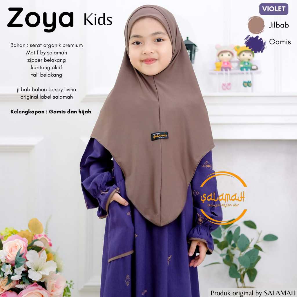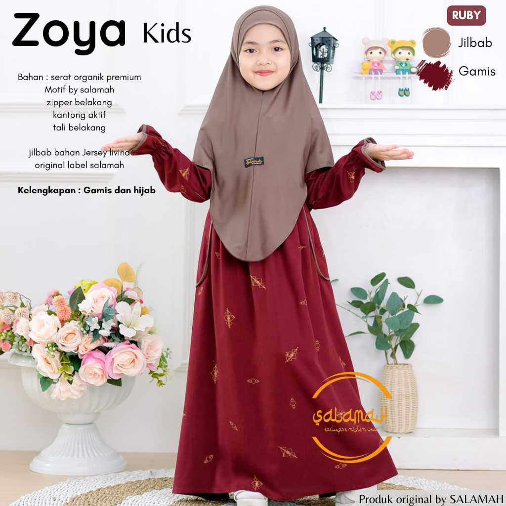 Gamis anak ZOYA KIDS Plus Jilbab| Motif by Salamah | usia 2 3 4 5 6 7 8 9 11 -15 tahun | by Salamah