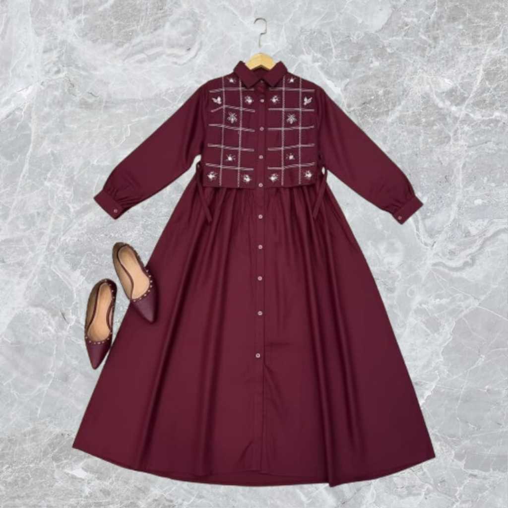 Afifah Dress Gamis Kondangan Remaja Dewasa Kekinian Gamis Mewah Bahan Polo Linen Mix Bordir