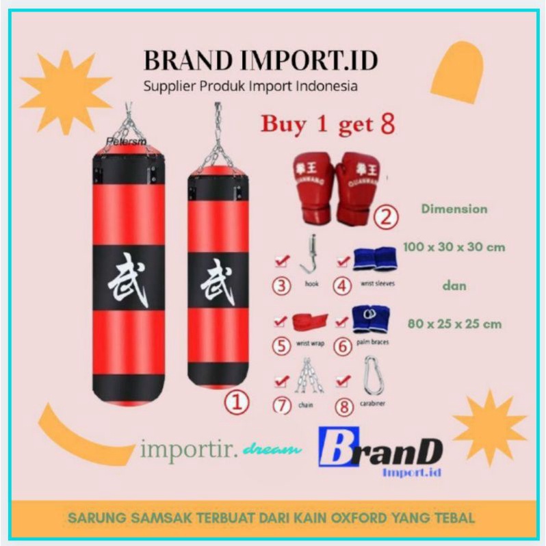 (100ORIGINAL) Paket Lengkap Sarung Samsak Tinju MMA Muay Thai Boxing ukuran (80CM)
