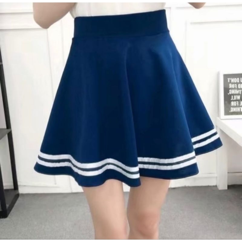 ROK PENDEK WANITA LIST HITAM PUTIH / ROK MINI SKIRT FLARE / ROK SRT OLAHRAGA JOGING BULUTANGKIS GYM BERSEPEDA