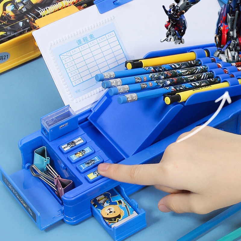 Dengan Rautan Pensil Tempat Pensil Berkapasitas Besar Tempat Pensil Magnet Sandi Kotak Pensil Anak Kode Sandi Tempa