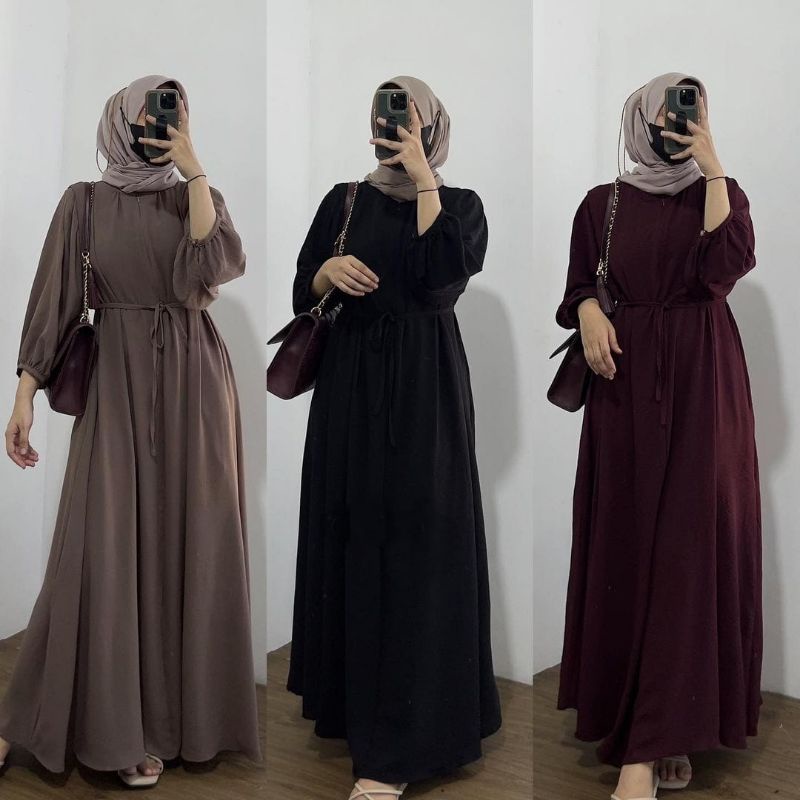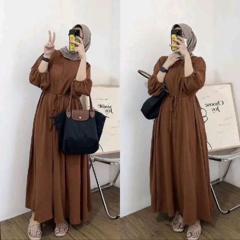 DANIRA MIDI DRESS CRINKEL PREMIUM GAMIS POLOS KRINKLE AIRFLOW PINGGANG TALI BUSUI FRENDLY