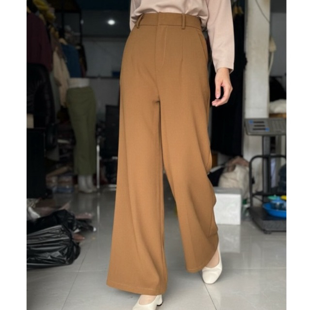 Loose pants trousers wanita-celana anti kusut- dengan karet belakang celana kulot wanita-celana kerja wanita panjng hita