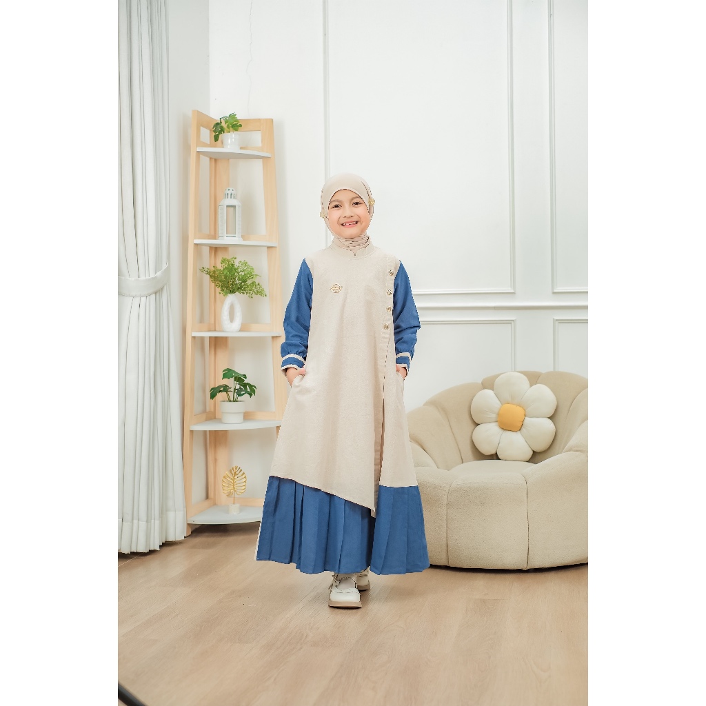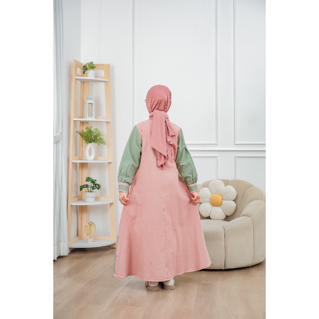 Vazeera Gamis Anak Katun 4–12 Tahun Kombinasi 2 Warna – Dress Muslim Anak Nyaman Harian