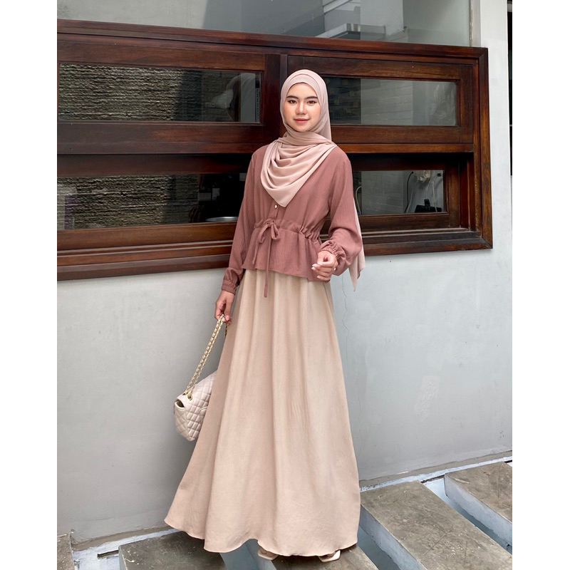 Rosella Dress Bahan Premium Crinkle Gamis Wanita Remaja Simpel Kekinian