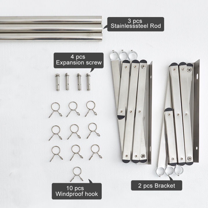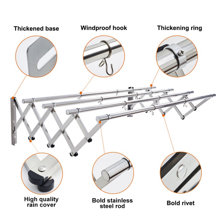 Jemuran Baju Pakaian Dinding 160CM-200CM/Jemuran Dinding Stainless Steel/Jemuran Lipat Dinding 3 Batang 4 Batang