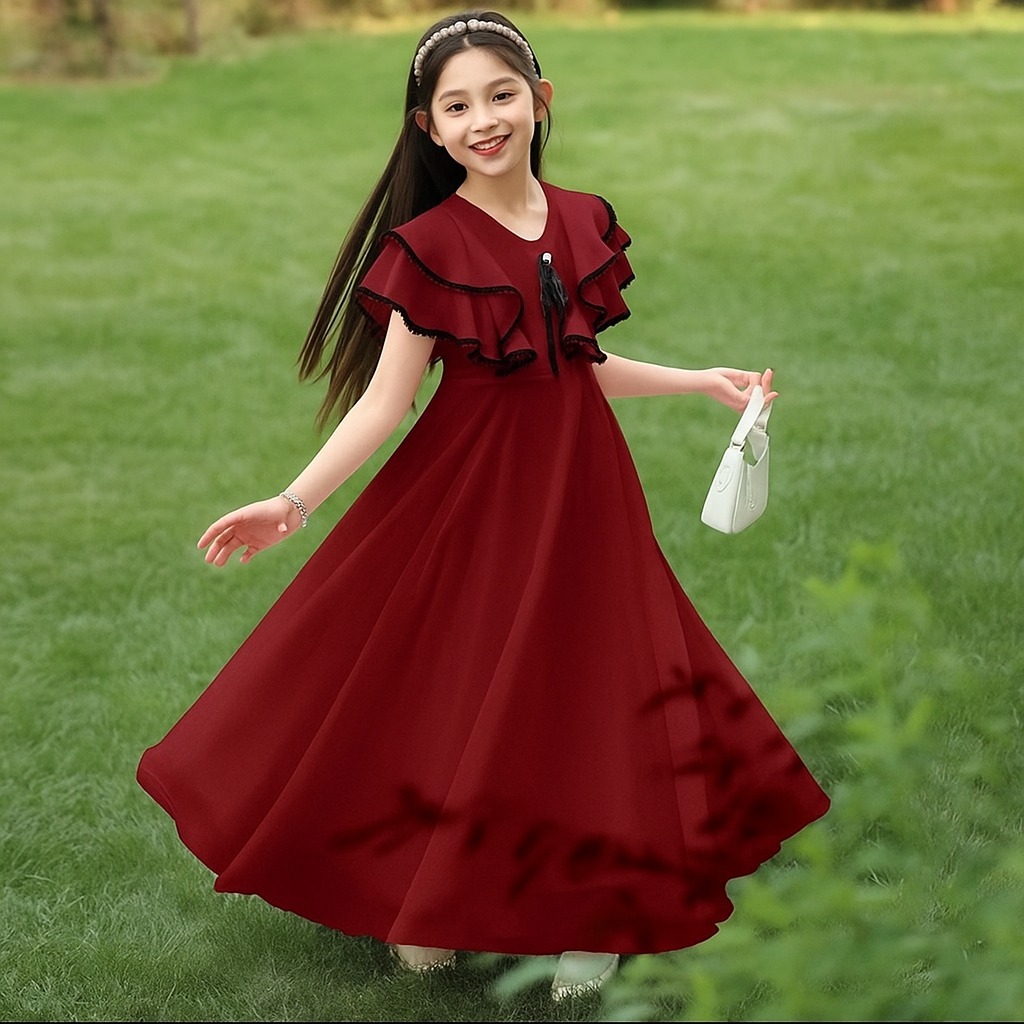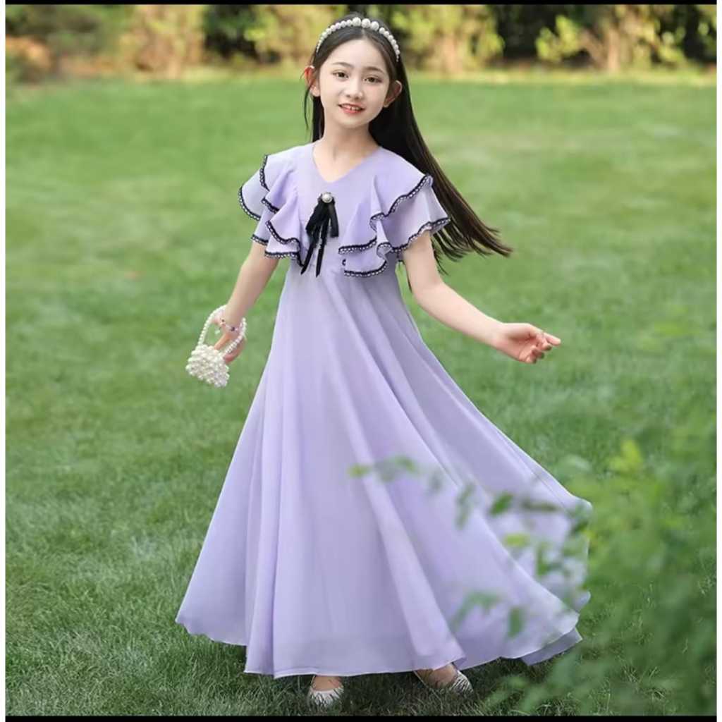 DRESS ANAK PEREMPUAN BANGKOK PRINCESS WHITE LONG PRINCESS/DRESS LEBARANTERBARU/UMUR 5-15 TAHUN/FASHION ANAK/ANAK KOREA/GAMIS ANAK/TERLARIS