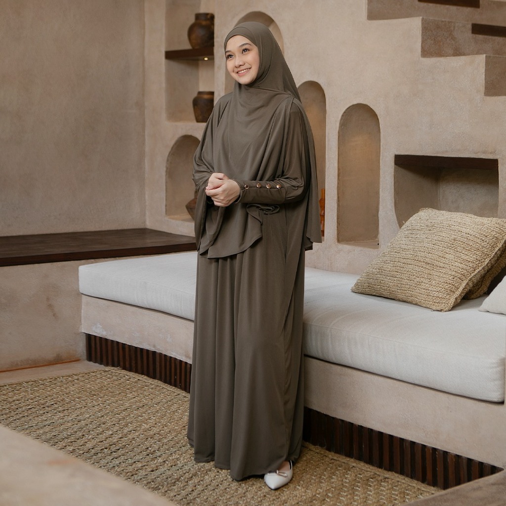 Hafisa Abaya Set (Abaya Gamis Set Khimar Haji dan Umrah Bahan Jersey)
