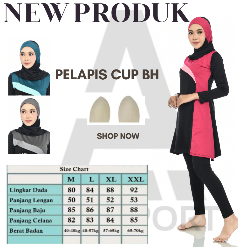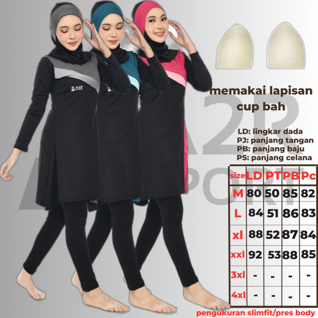 Baju Renang Muslimah Dewasa Cup BH Model Blous 2