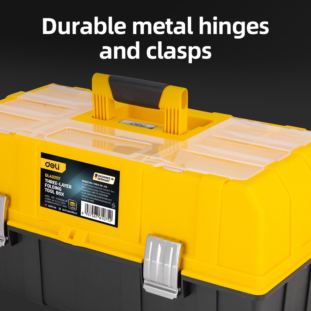 Deli 3-Layer Folding Tool Box/Kotak Perkakas 3 Tingkat Panjang 43 CM Kapasitas 20 KG DL4321XX