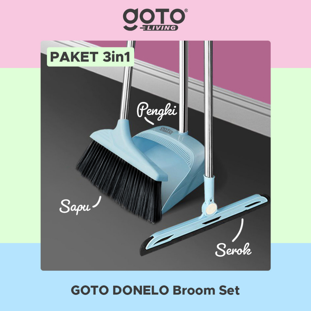 Goto Donelo Broom Sapu Pengki Set 3In1 Serokan Karet Pembersih Lantai