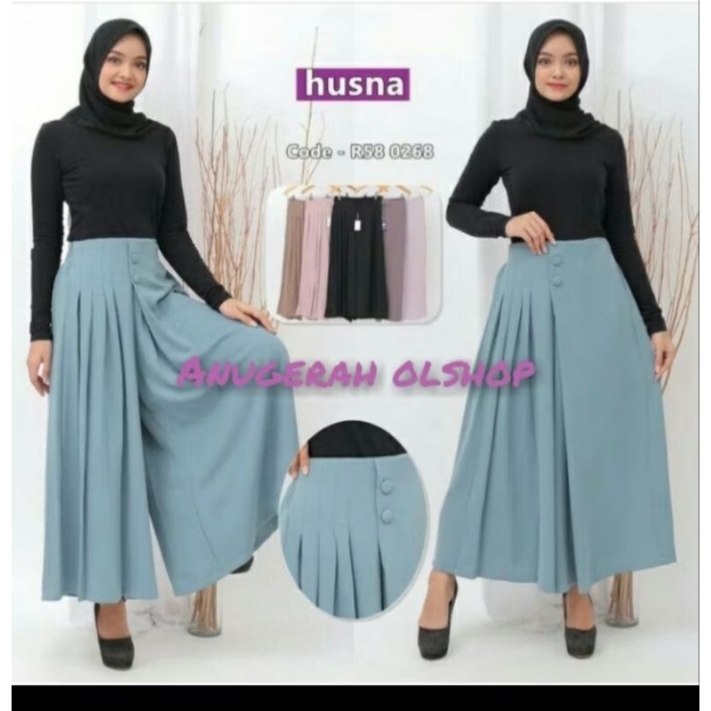 Celana Kulot Husna Kancing 2 Bahan Crepe/Furla