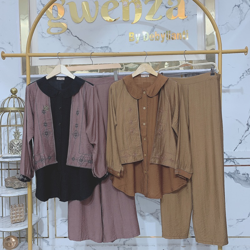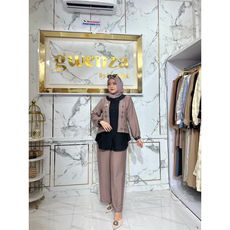 Gwenza - Biandra Setelan Celana Linen Motif Bordir - Muslim Wanita