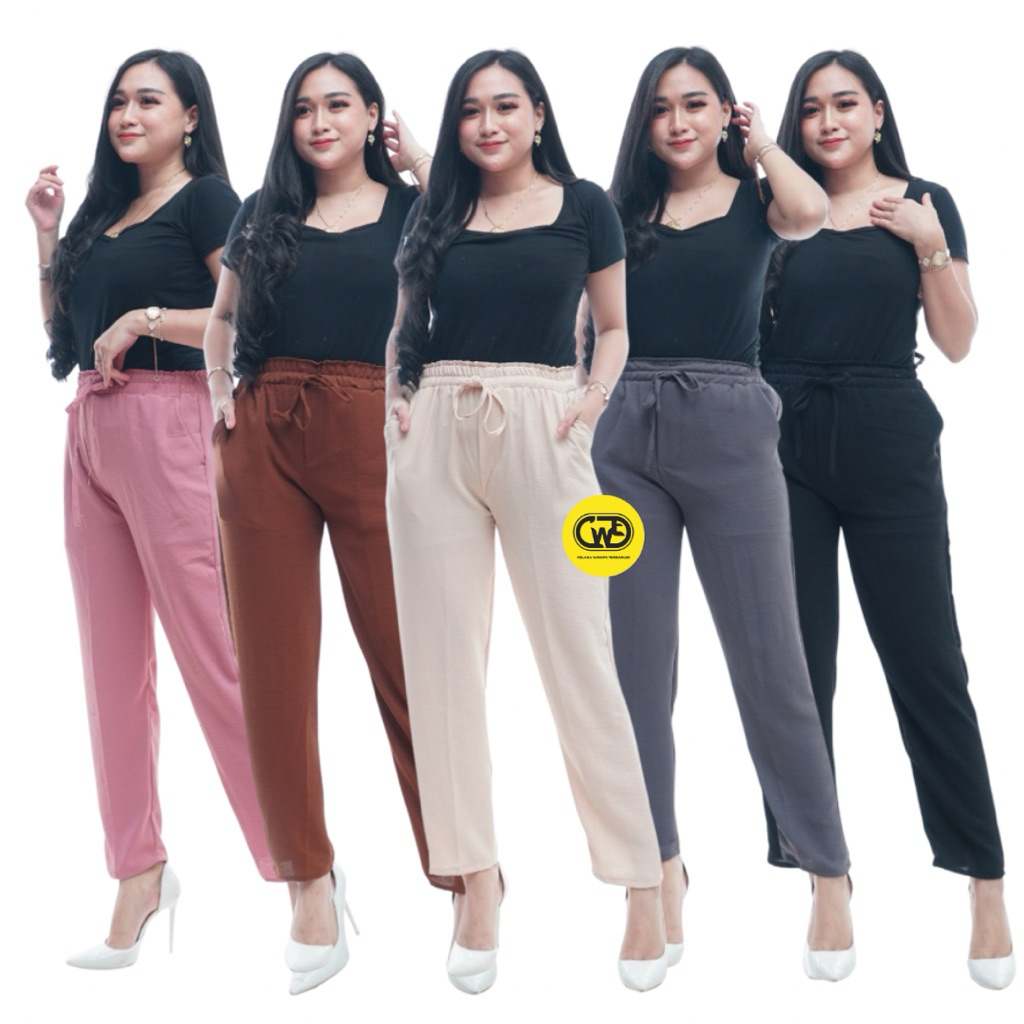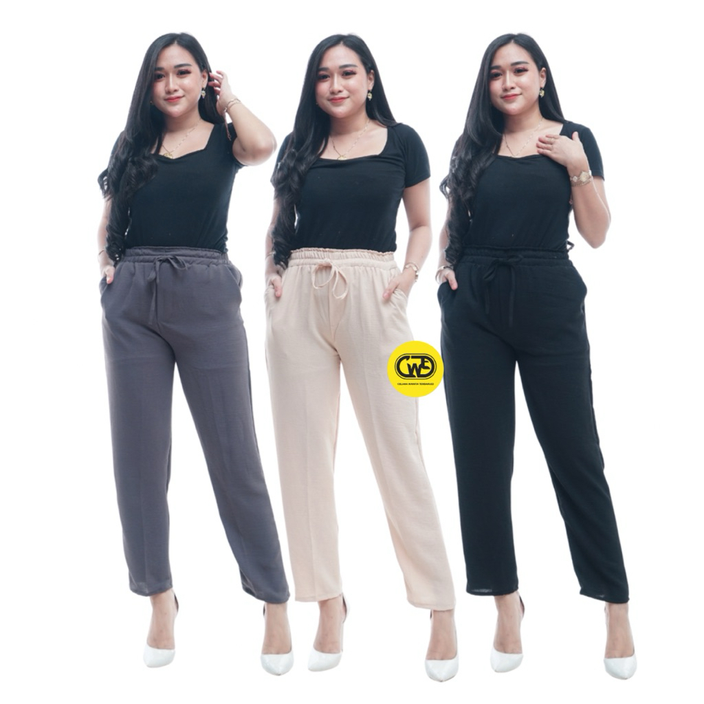Celana Baggy Pant Crinkle Premium AirFlow 3 Pcs 100 Ribu - el Panjang, Tali Pinggang Bisa Diatur