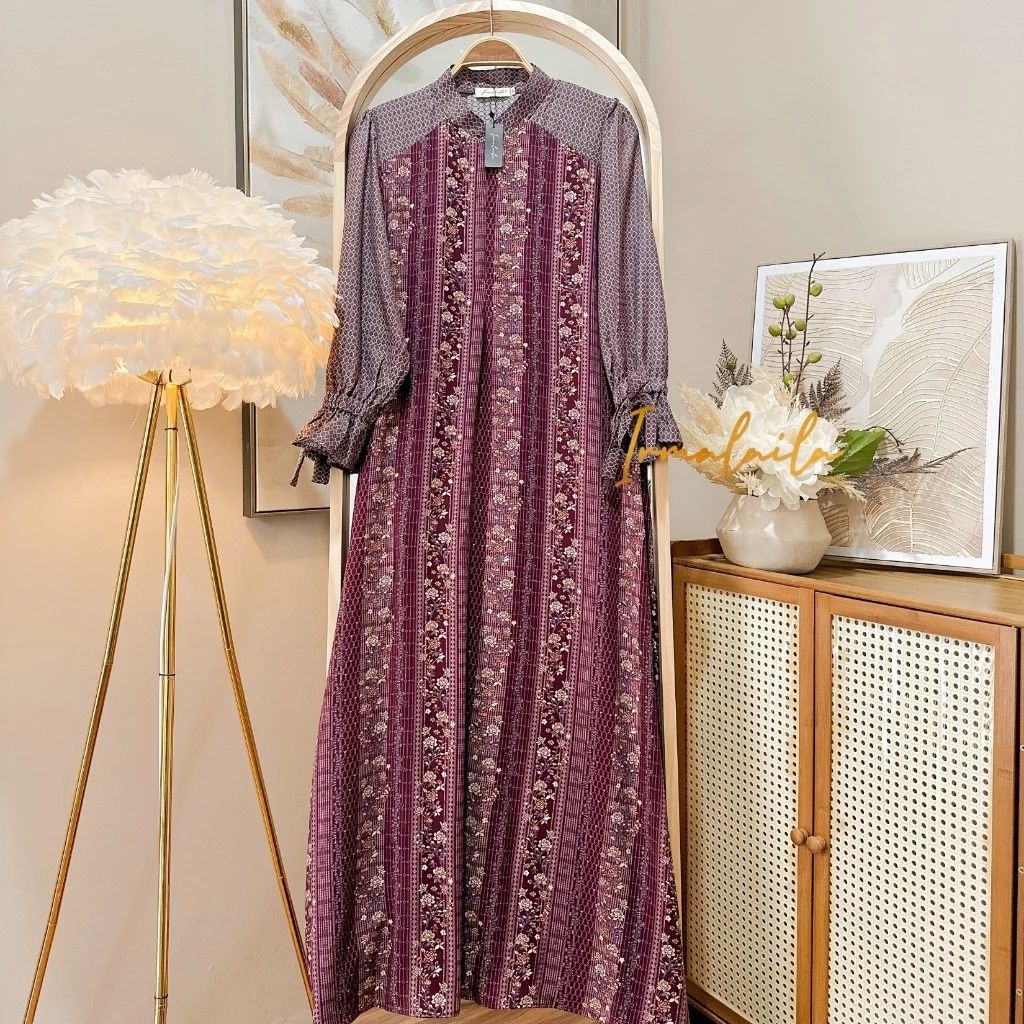 Promo Ellena Dress Gamis Wanita Rayon Motif Mix Rayon Jaguard Lembut Adem Nyaman Daily Bumil dan Busui Friendly