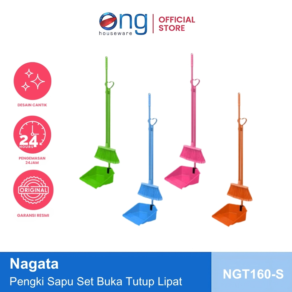 Ong Houseware - Sapu Pengki Set Dustpan & Broom Nilon Nylon Gagang Plastik Nagata NGT160-S