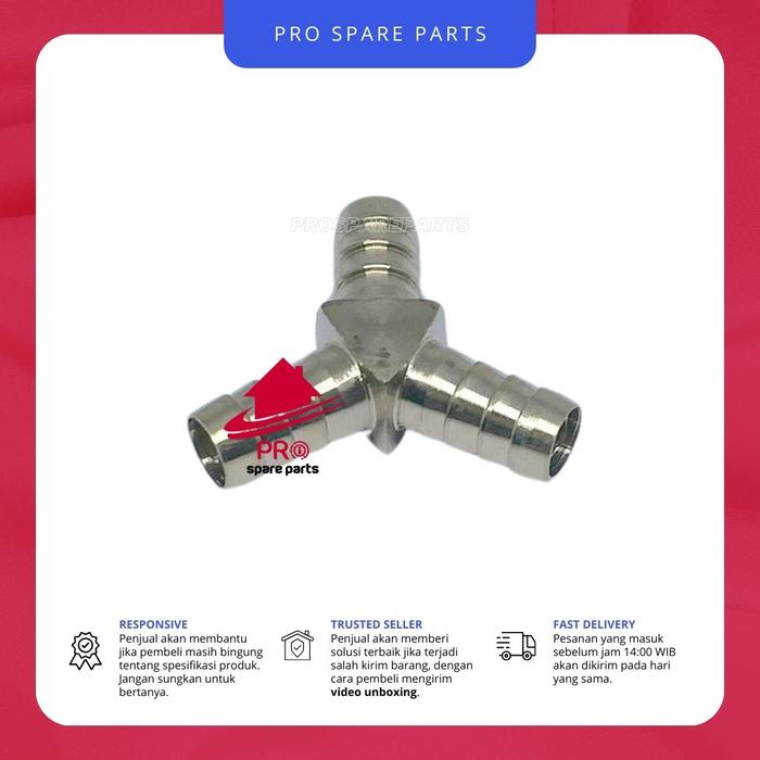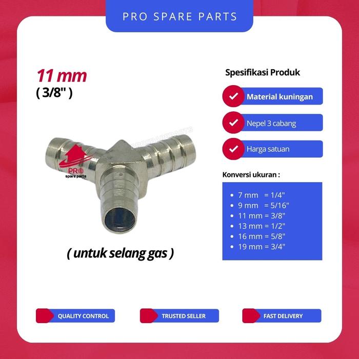 Kuningan Sambungan Selang Gas / Air Cabang 3 Y - Nepel Selang Gas Ukuran 11 mm 3/8 Inch