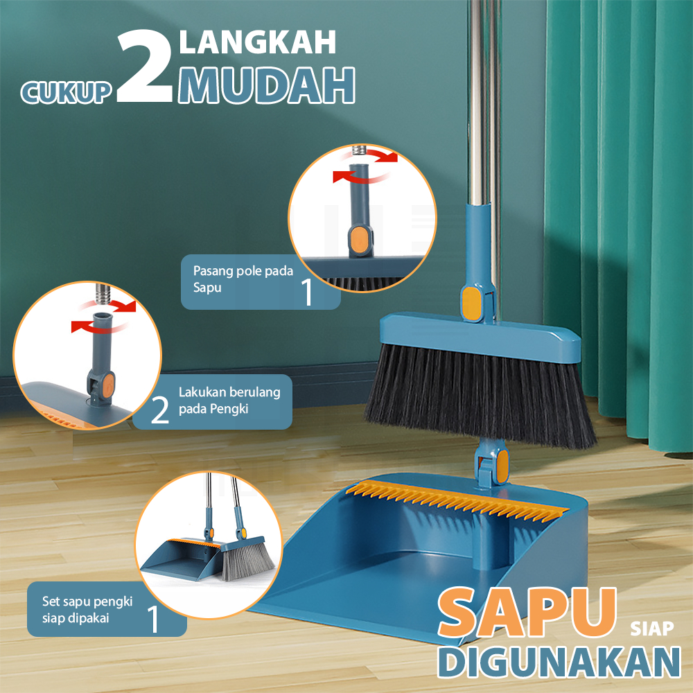 HUGO Set Sapu Pengki Alat Pembersih Lantai Broom Set Dustpan Sapu Lipat Praktis Sapu Lantai Pengki Set Multifungsi