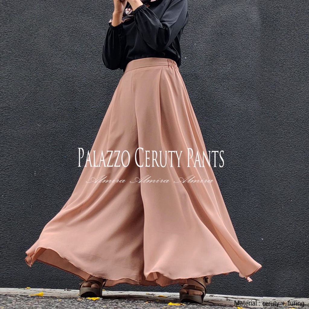 Celana Kulot Panjang Payung Lebar Wanita Muslimah Polos Palazzo Sifon Chiffon Ceruty Pants Almira