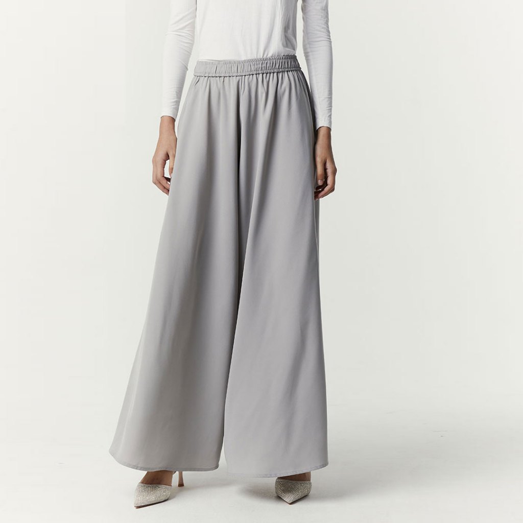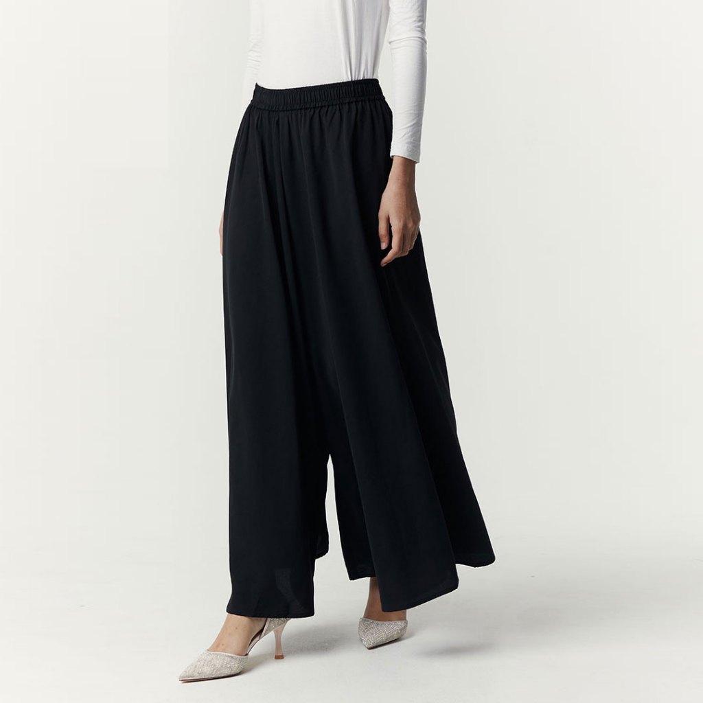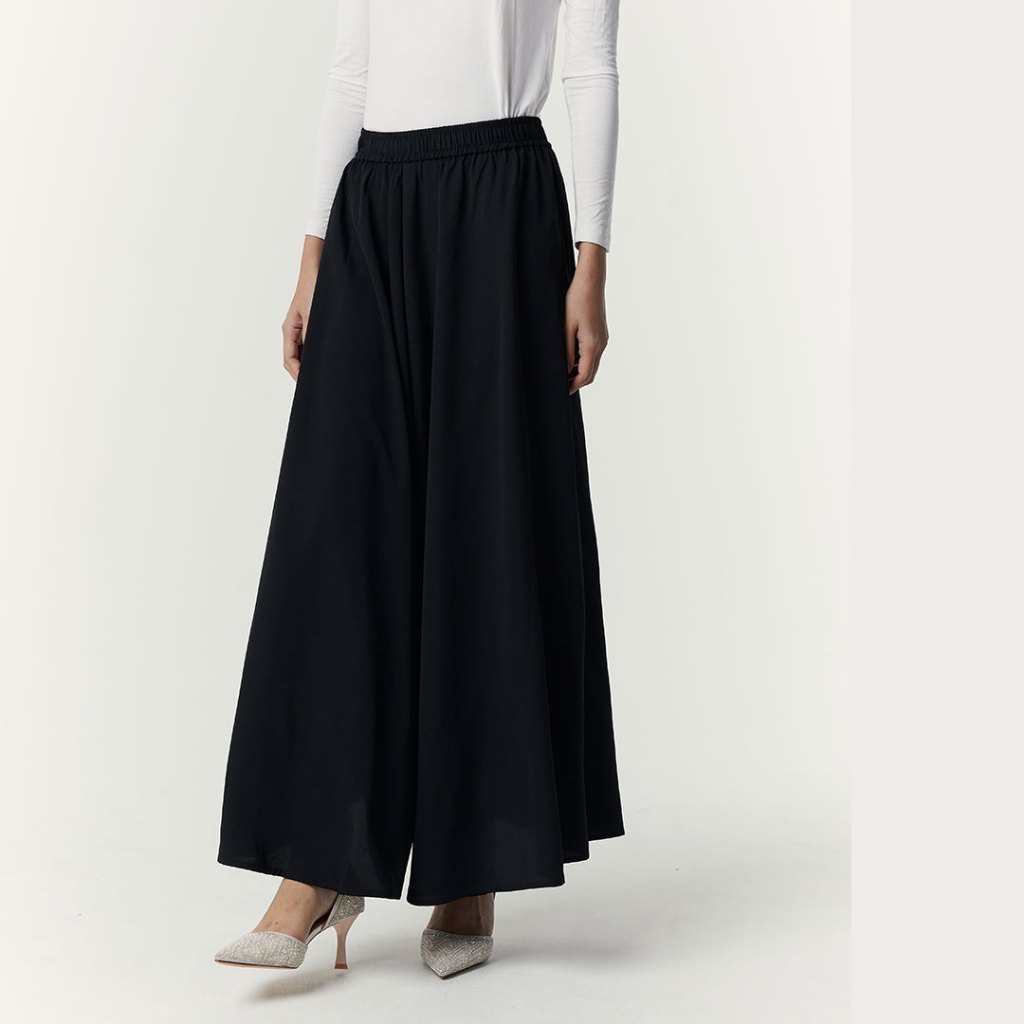 Sahara by Aska Label - Celana kulot wanita lebar pinggang karet, warna Hitam, Offwhite, Navy, Grey, Seafoam, Sky Blue, S