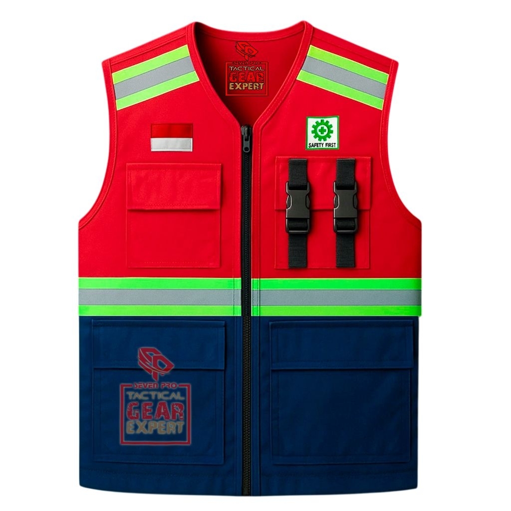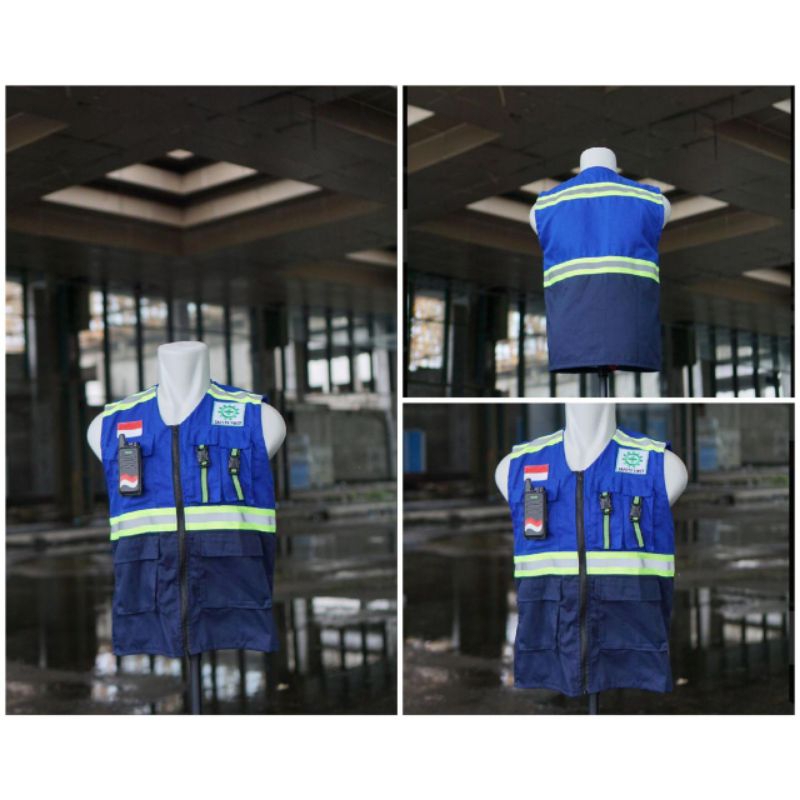 ROMPI SAFETY VEST/ROMPI PROYEK/ROMPI SAFETY/BAHAN DRILL WARNA BIRU KOMBINASI NAVY M/SAFETY VEST PROYEK/TAMBANG/SAFE