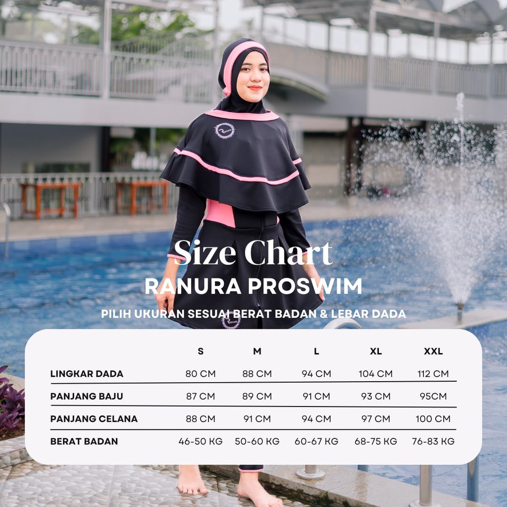 Baju Renang Pelampung Wanita Muslimah Ranura Proswim Hijab Dewasa Panjang Syari Black Pink