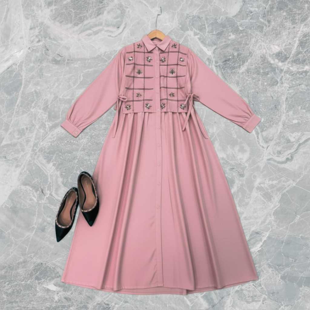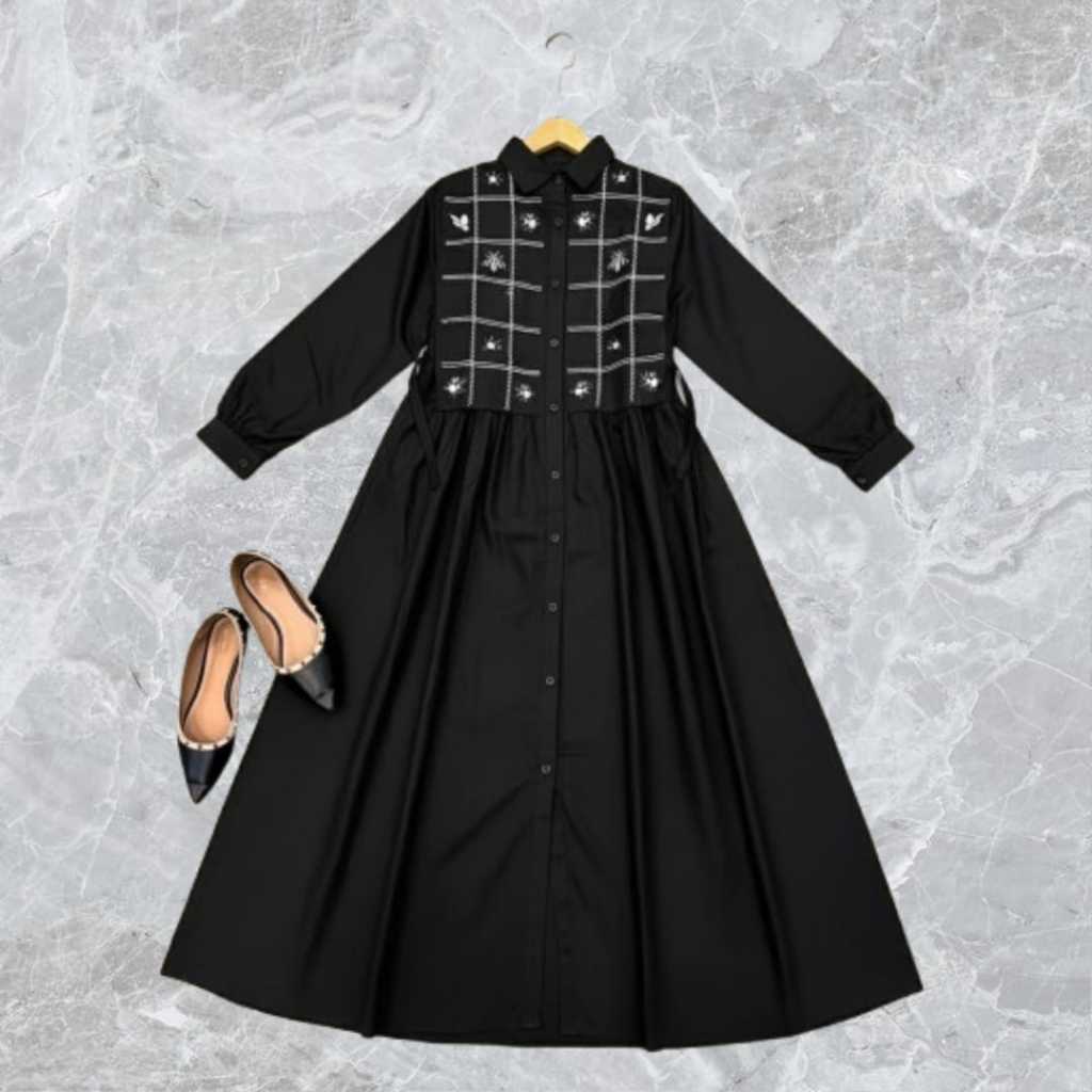 Tamara Gamis Remaja Ootd Korean Style Polo Linen Premium Mix Bordir Timbul Viral Kekinian DressPesta