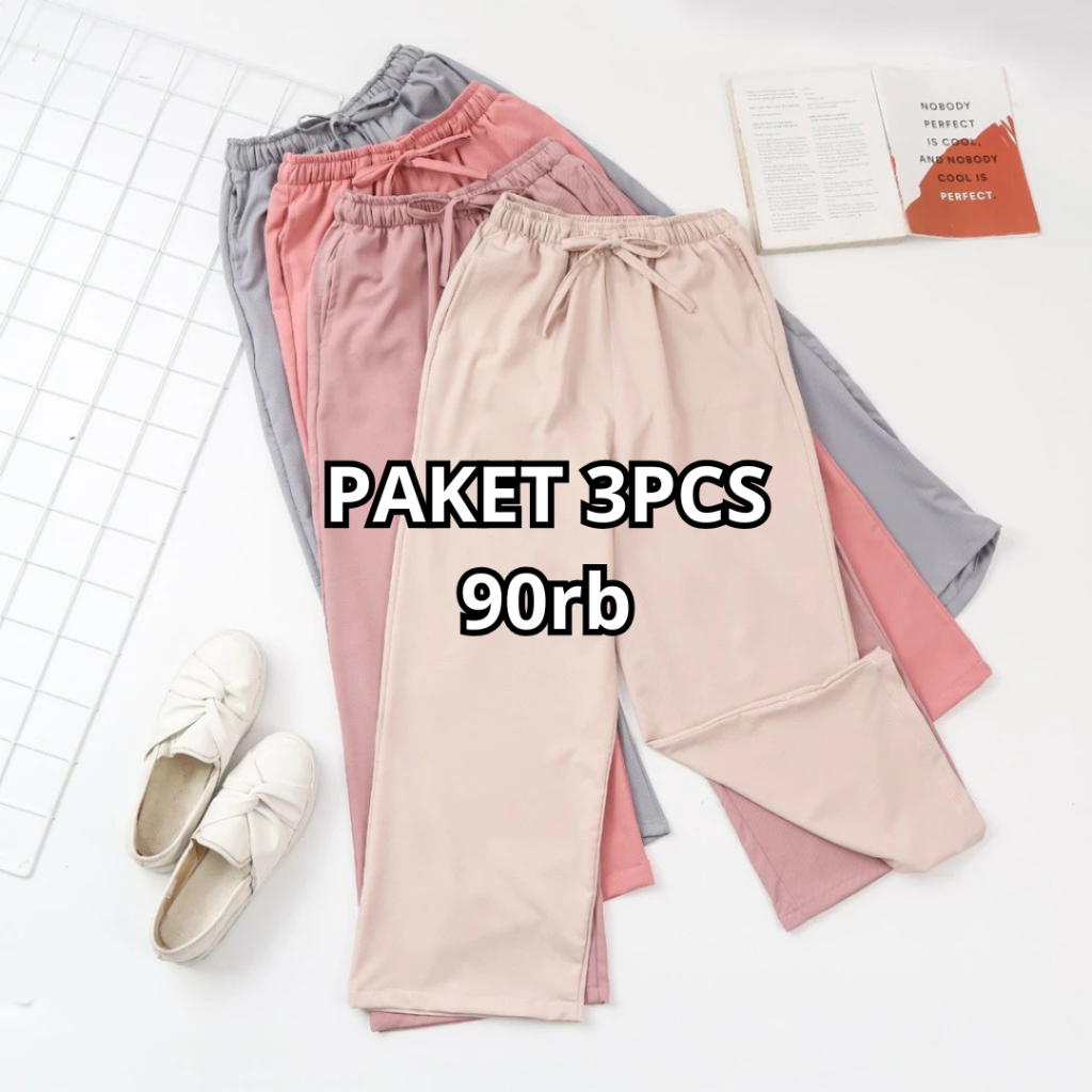 Threelook - Paket Hemat isi 3 Pcs Celana Panjang Wanita Kulot Crinkle Airflow Terlaris Adem Dan Tebal Ukuran Jumbo Sampe