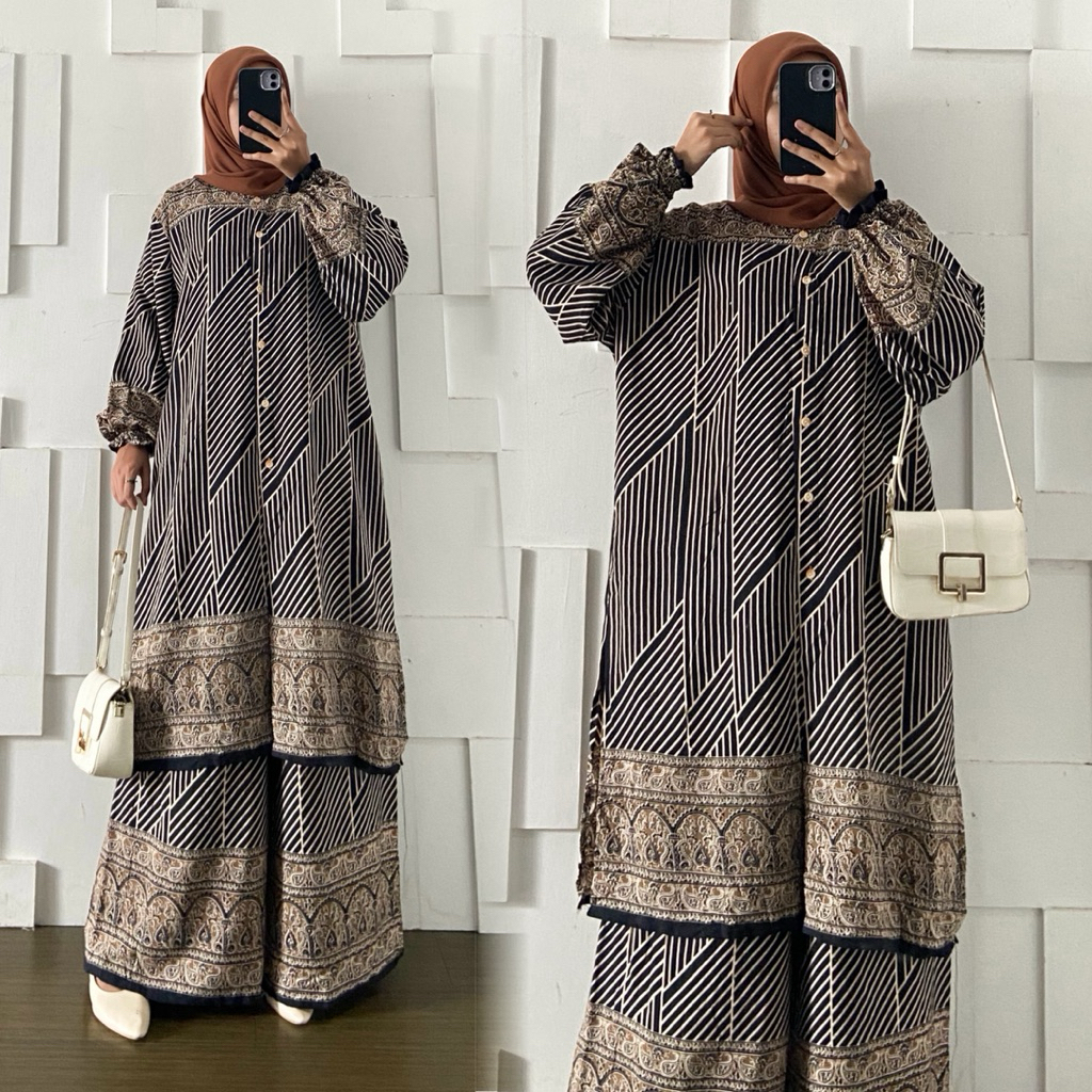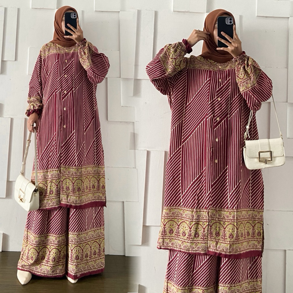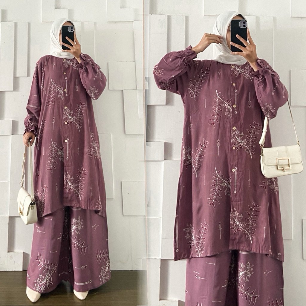 Maura Set Long Tunik dan Celana Kulot LD 130cm Jumbo Bahan Rayon Adem Busui By Kirania