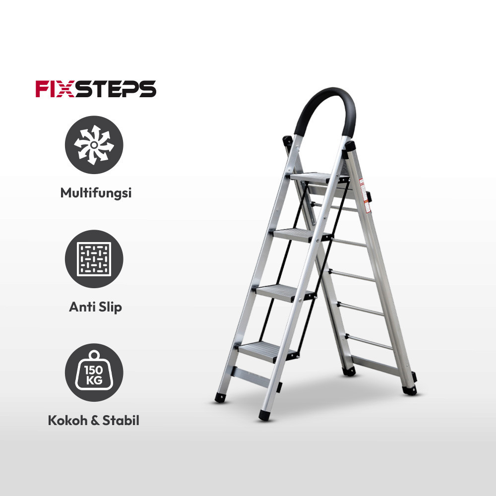 Fixsteps 1.5 mtr Tangga Lipat Jemuran Aluminium 2 In 1 4 Step Multifunction Household Ladder Peralatan Rumah Tangga