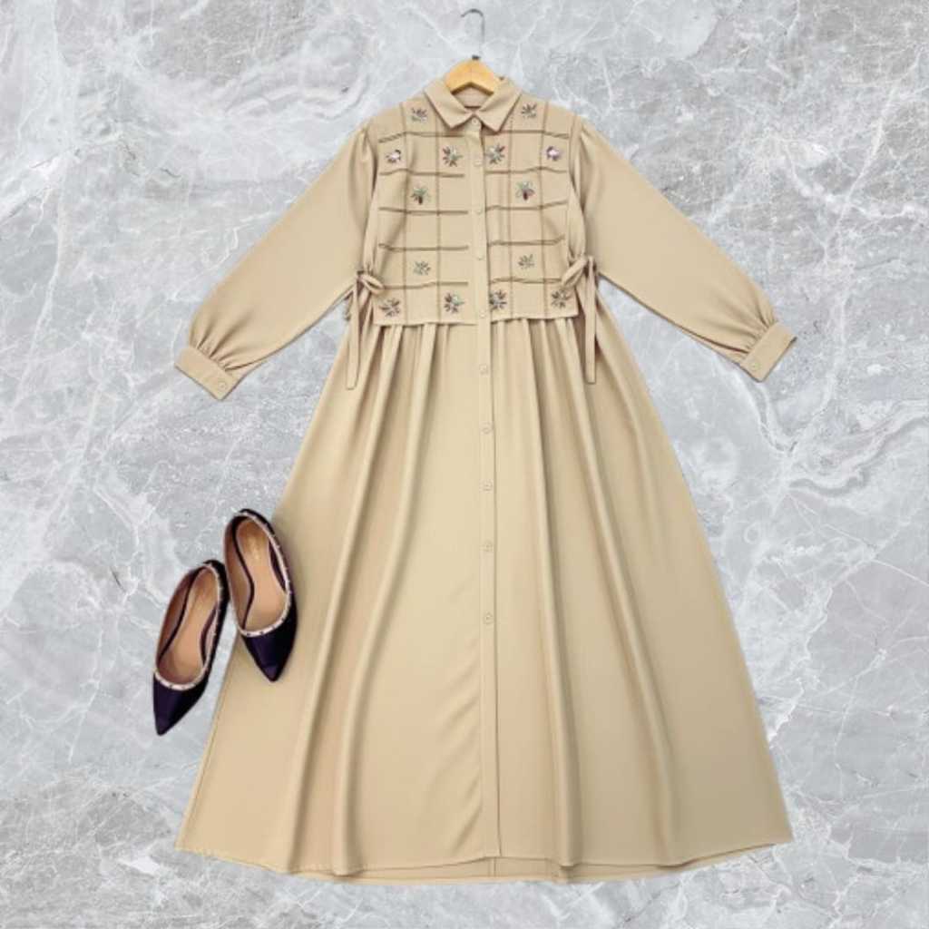 Afifah Dress Gamis Kondangan Remaja Dewasa Kekinian Gamis Mewah Bahan Polo Linen Mix Bordir