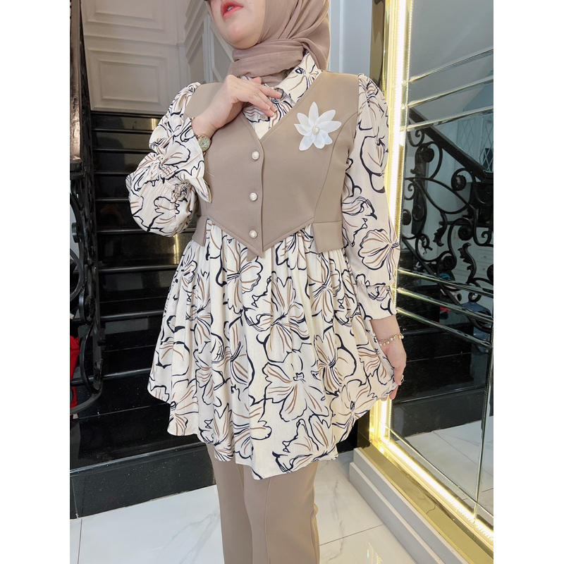 Gwenza - Delicya Setelan Celana Scuba Motif - Muslim Wanita