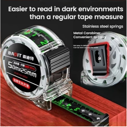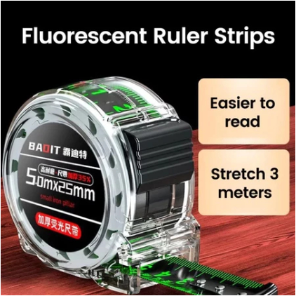 Pita Pengukur Baja 10/5M Penggaris Fluoresensi Transparan Penggaris Pengukur Presisi Tinggi Meteran Anti Karat