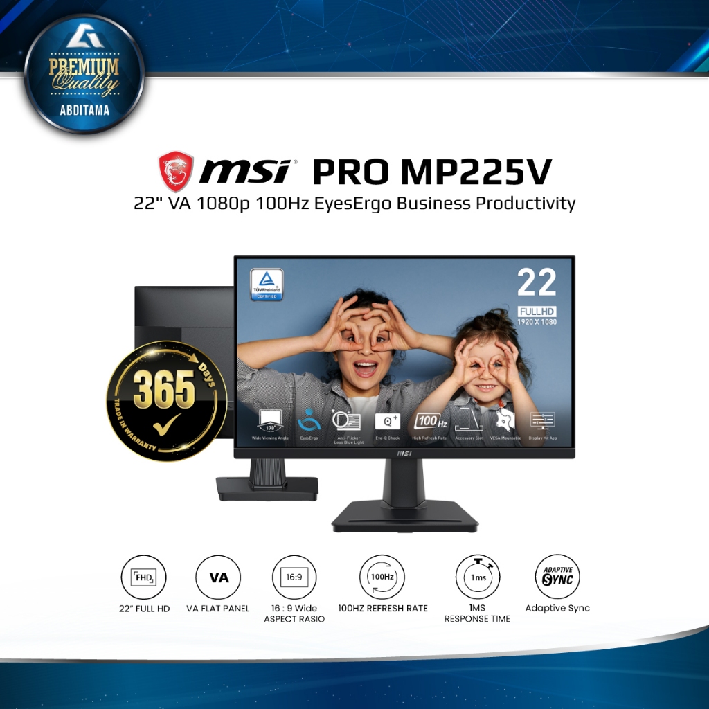 Monitor LED MSI PR00 MP225V 22" VA 1080p FHD 100Hz HDMI 1.4 x1 VGA x1 VESA 100x100mm EyesErgo Business PR00ductivit