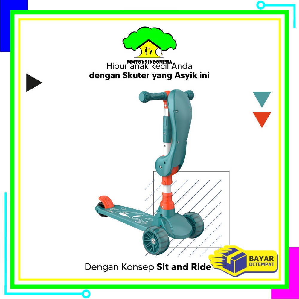 Mi-M290 Mainan Anak Skuter Otoped Sepeda Duduk 3 Roda 2In1 Ada Musik Lagu Lampu Scooter Anak Roda Nyala