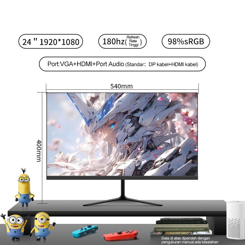 MIIGO- Monitor, Monitor Game PR00fesional, Monitor 24 Inci, Tampilan Lengkung, Panel IPS, 144HZ/165HZ Kecepatan R