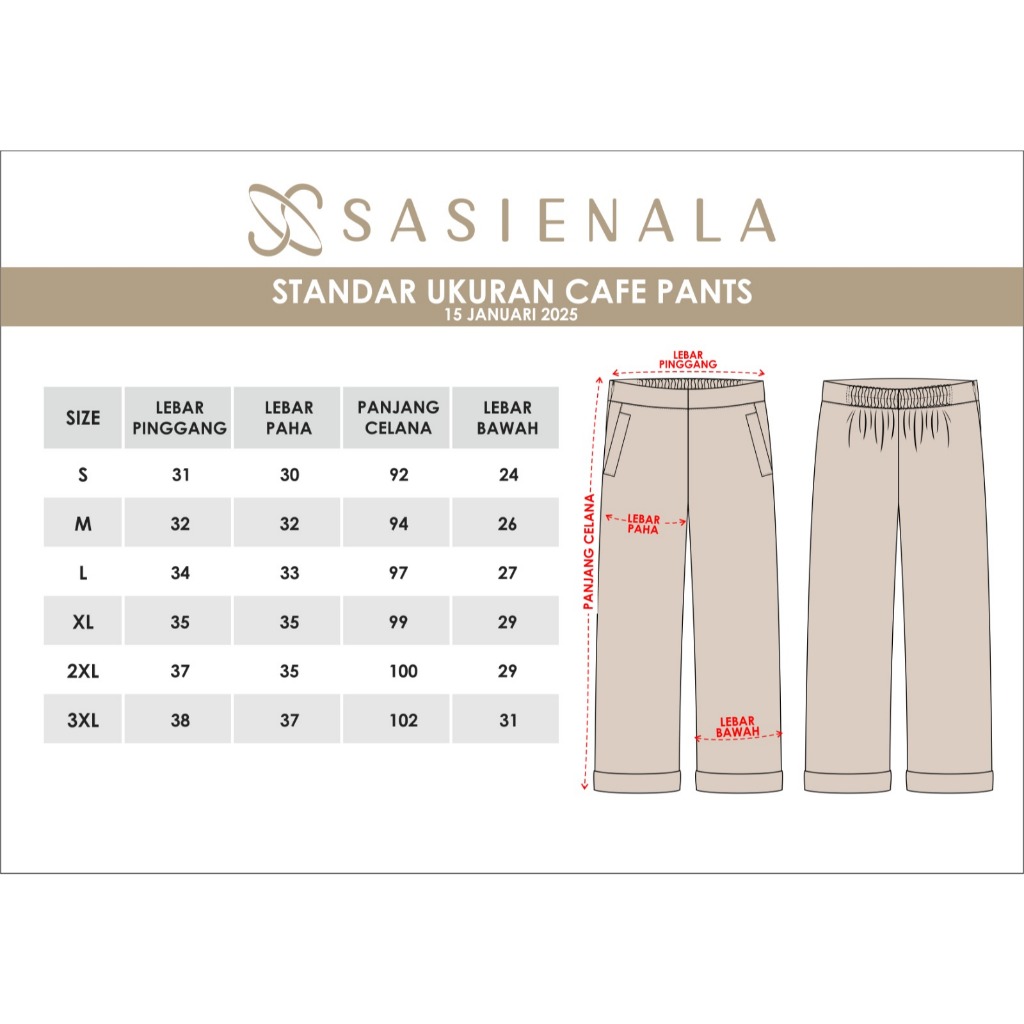 SASIENALA CAFE PANTS | Celana Kulot Wanita | Celana Casual | Celana Panjang High Waist | Hip Culotte
