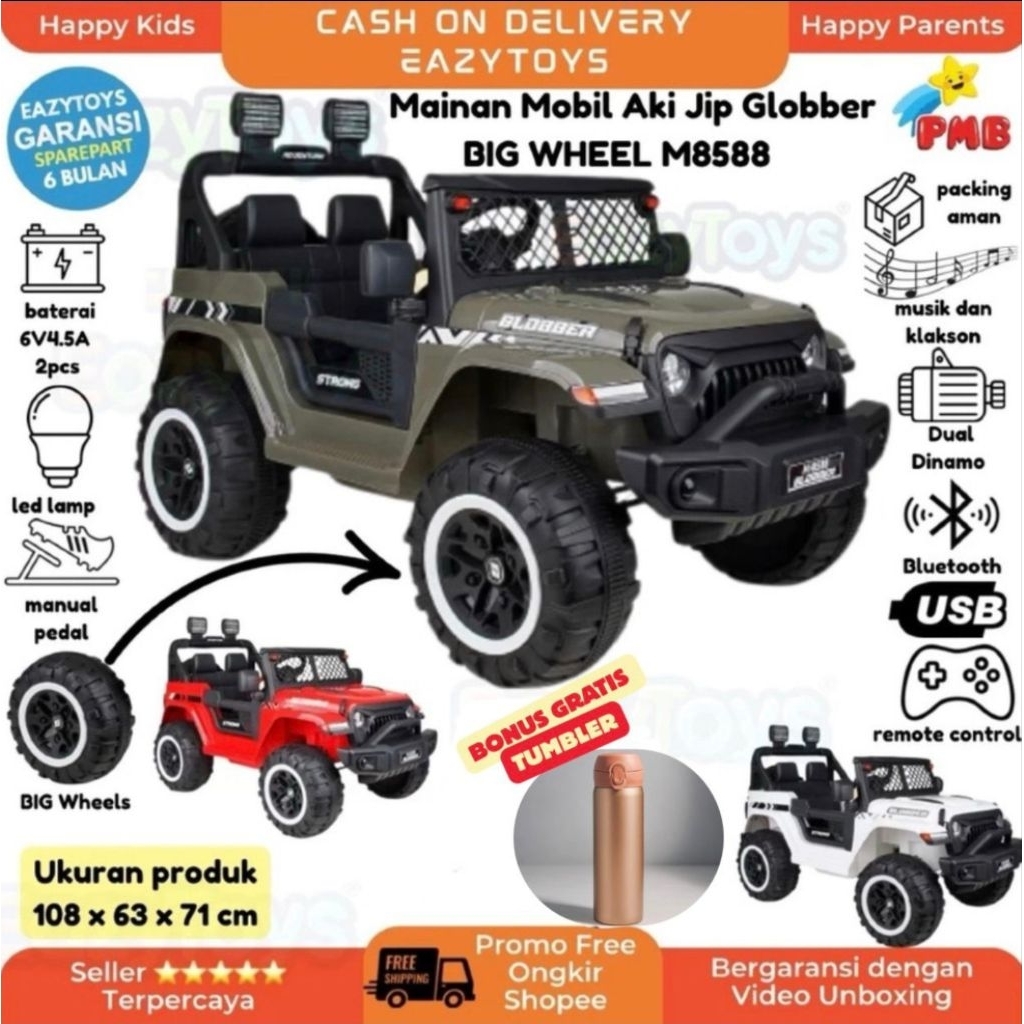 Mainan Mobil Aki Anak Jeep Globber PMB M8588 OFF ROAD Ban Besar fitur Remote Control
