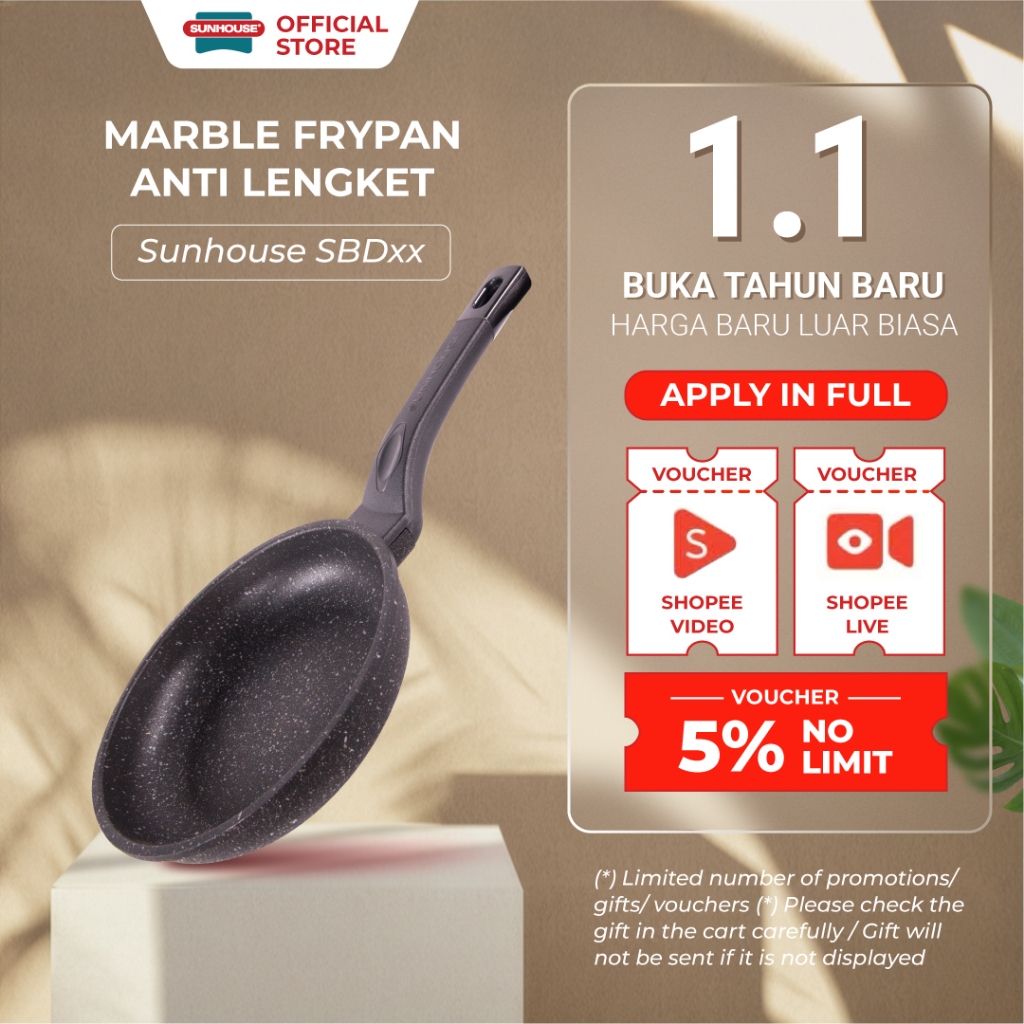 Sunhouse Sbd Marble Frypan Anti Lengket 18, 24, 26, 28, 30 Cm Hitam 1 Pcs