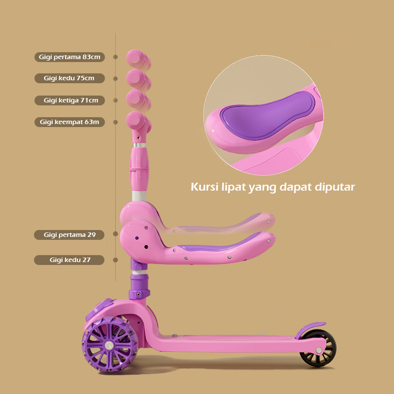 Skuter Anak Roda 3 Skuter 2 In1 Bisa Dilipat Cocok Untuk Usia 2-12 Tahun Scooter Otoped Dengan Lampu Musik